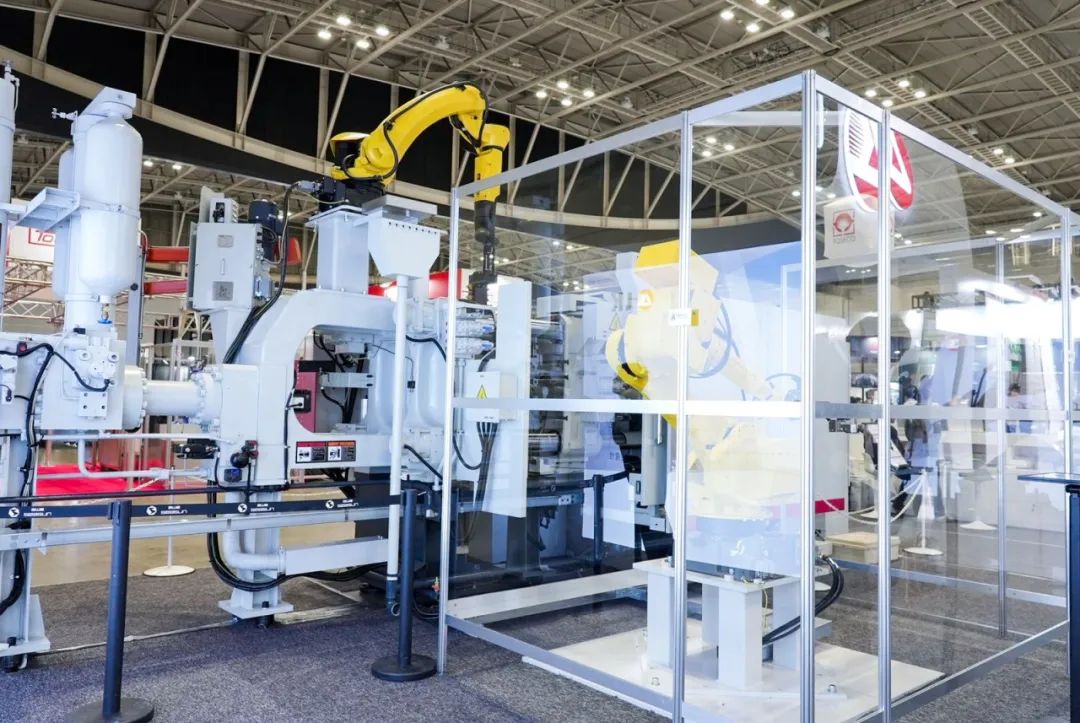 展会现场展示了一款全新的C系列压铸机及周边配套设备。该压铸机与周边设备由力劲集团在日本的生产基地独立生产、组装与调试完成,大幅度地使用了日本本土品牌的零部件,展示了力劲在日本本土供应链的配套能力,同时也展示了力劲集团积极布局日本市场的决心与重视程度。
