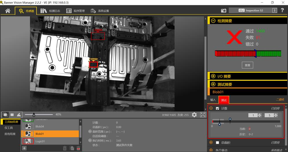2. 使用Blob工具+Logic输出控制进行检测。