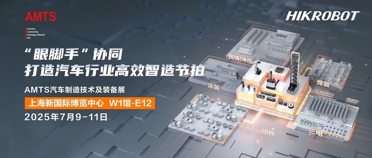 7月9日,AMTS 2025上海开幕!海康机器人以“眼脚手”协同,打造汽车行业高效智造节拍为主题,携全新视觉技术与创新产品...
